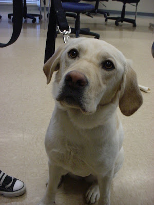 Overall I think it was a very successful outing and it exposed my pup to things he probably wont experience until he is with his blind person, and he did magnificent. All of the pups did. Oh, here is a funny little observation, there were like ten black labs there and two yellow labs, I just thought that was funny since in the past it is usually yellow labs that dominate. . .I guess that is why GDB is trying to breed more yellow pups. :S